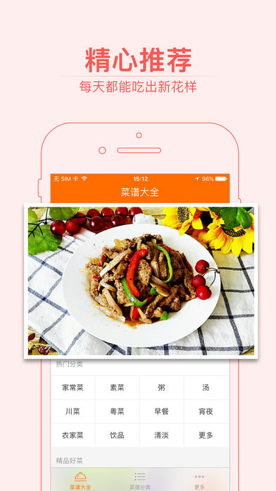 菜谱大全,汇集了来自全国各地的数十万道家常菜,并配以精美的图片,内容丰富详细,图文搭配更容易上手,页面简洁大方,超级好用,瞬间爱上了有木有! 我们的产品特色: (1)数十万精品菜谱,统统免费使用! (2)强大的搜索,帮你找到所有你想要的! (3)强大的收藏,喜欢就毫不犹豫地留住! (4)贴心的浏览记录,看过的菜谱都在这里! (5)描述详细,图片高清,做菜轻松又容易! (6)精品好菜推荐,天天都能吃出新花样! 有了菜谱大全,让你立马爱上做菜,轻松成为完美的厨房小能手! ———————来自友友们的认可——————— “挺好的软件,对于厨房小白来说,是非常棒的助手,学会做饭,想吃什么做什么……”---by 闭着眼睛流泪的姑娘 “菜谱大全很实用,我不会做菜,想吃什么先在上面查一下,再做很方便。”---by 57124689244 “很好用很详细,主要是有配图让我这个不会做饭的一目了然给个赞。”---by 周煊伟 “应用里的菜品很丰富,每一道菜的制作步骤很详细,小白一看就会,很棒!”---by HoneyWTT “为了给孩子做可口的饭菜特意下载的,同时也下载了其他软件,相对来说这款更实用,用起来也很方便,菜品也很多样,当晚就试做了两道菜,家人评价都不错,很满意。”---by 小飞鱼hxl “很不错的软件,美食可以轻松学起来,配图加文字,让吃货们学起来很方便,菜谱也很全,想吃就搜起来”---by Joe小小的幸福 “这个菜谱囊括了所有菜系,整个就是满汉全席,强烈推荐大家下载此APP,用不了多久你就是未来的厨神”---by 全本小说的秘密 ————————————————————— 感谢所有支持我们的朋友们,你们的五星好评是我们前进的最大动力!