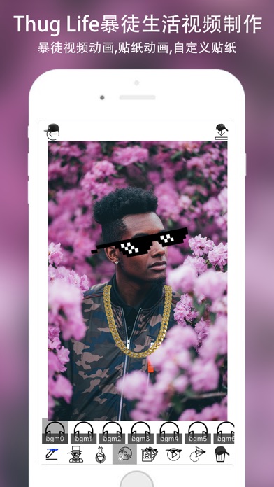 暴徒生活编辑器 视频合成编辑、图片结合版!! 视频功能: 现在开始您可以使用视频合成功能啦!在您喜爱的视频上面添加thug life贴纸,任意位置,制作你自己的暴徒视频! 制作步骤: 1.选择视频 2.选择视频帧 3.在视频帧上添加thug life贴纸,选择喜爱的背景音乐,选择喜爱的滤镜对视频帧处理,更有文字功能,视频动画功能等操作! 4.合成,分享好友,朋友圈 图片功能: 在您的照片添加thug life 流行贴纸吧!您可以扮酷,耍帅,装大款!不同样式的大佬眼镜让您玩转与照片之中! 更多功能尽在新版本哦!一起来玩thug life贴纸吧!开启您的照片暴徒生涯!