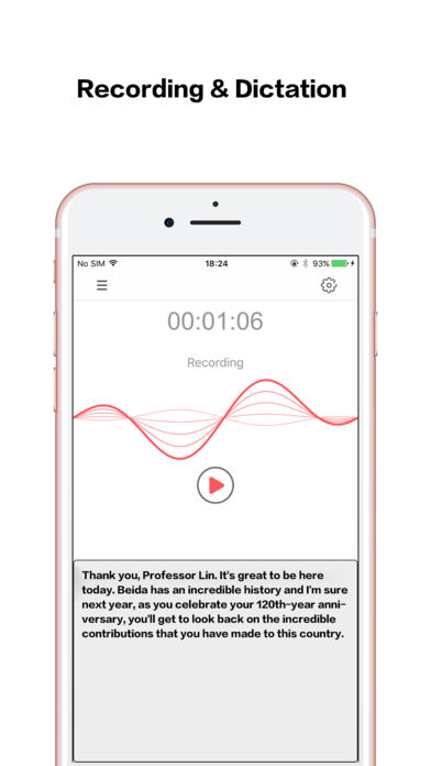 ==最后一天半价!赶快下载吧!== 语音备忘录,录音的同时将语音转成文字,非常适用于会议记录,演讲记录及课堂讲解记录! 借助科大讯飞世界领先的核心技术,语音识别完整准确! ++++++特点功能+++++ 1. 点击开始录音,随时可以暂停,结束后保存并给录音命名; 2. 支持识别多种语言; 3. 预览界面可以边听录音边修改文字,还可重命名; 4. 支持分享到各种网络平台!
