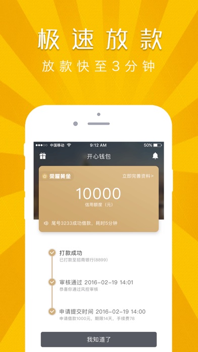 开心钱包,借款只需提供身份证+手机号,并以快速审核借款为服务主旨,一分钟申请借款,三分钟即可极速到账。 开心钱包是一款主要针对蓝领群体,工薪群体,白领群体,信用卡群体等各个社会阶层的极速短期小微借款(不向学生提供服务)。 开心钱包隶属于上海灿福信息科技发展有限公司,以数据驱动,普惠金融为宗旨,是国内领先的金融科技公司。 开心钱包团队成员分别来自国内外知名公司,如腾讯、百度、Autodesk、硅谷顶级投资机构以及国内顶尖银行。