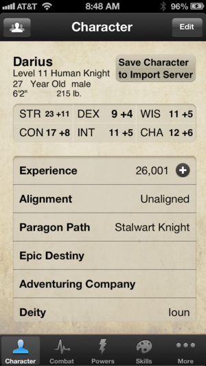i4e is a character sheet replacement for 4th edition D&D allowing you to store multiple characters on your iPhone, iPod Touch or iPad. It will track your character's ability scores, hit points, powers, skills, feats, weapons, armor, action points, milestones, rituals, items, and notes, providing you…