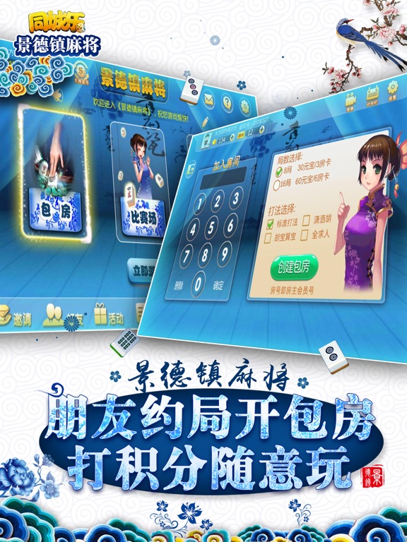地道景德镇麻将规则,新版上线,全新玩法。邀好友开设包房,一键直达包房,方便快捷,打积分随意畅玩。包房设有录像及回放功能,全程防作弊。每日大奖赛,签到领金币,万人在线陪你玩!