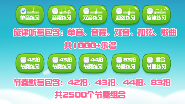 我们希望为您提供一款专业而又内容丰富的视唱练耳训练应用。 这款APP专门为正在音乐入门、或有一定音乐水准的您准备的,它以虚拟钢琴为辅助乐器,帮助用户循序渐进地进行练耳训练,包含丰富音节韵律(共1000+)和多种节奏型组合(2500个)、界面简洁、操作简单,只重点关注音乐素养本身的培训和乐理的代入感。 最新版APP包含单音、双音、音程、和弦、旋律在内的多种音节韵律,以及2/4、3/4、4/4、3/8拍常见的节奏型组合,强化用户对音节声调和基本节奏的记忆,同时也包含专业的各类五线谱节奏型等元素。 我们友好的界面和与音符的互动适用于音乐素质的培养和乐理的前期教育,它也是针对艺考学员研发的专项训…