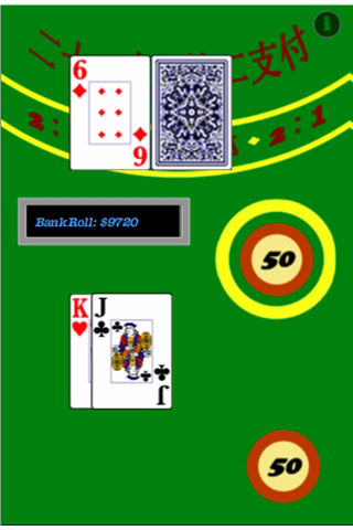 此游戏你熟练掌握二十一点高低算牌法。 此游戏很容易玩: 变换赌注额:点击钱币 开始赌:将钱币往上推 要牌:点击牌的下部 不要牌:在牌的下部从左至右划一下 加倍:将钱币往上推 分牌:将第二张牌向右划一下 保险:将左边钱币往上推 因为此游戏不用按键,使其更为逼真,如身领其境在赌城. 由算牌得到的指数决定赌注额。大西洋赌城或拉斯维加斯赌城战略决定:要牌,不要牌,加倍,或分牌。你可以改变游戏设制得到提示。当你玩此游戏,你的赌法不符合你选的战略,你将得到战略提示. 当你选的赌注额不符合算牌得到的赌注额,你将得到算牌提示。 点击右上方i 图标, 将得到更多的信息. 此游戏列出高低算牌法,战略图表供你随时查阅.游戏信息部分还包括其它有用资料供你参考. 正在玩二十一点的朋友:当你熟练掌握大西洋赌城或拉斯维加斯赌城战略,你可以开始玩二十一点算牌。