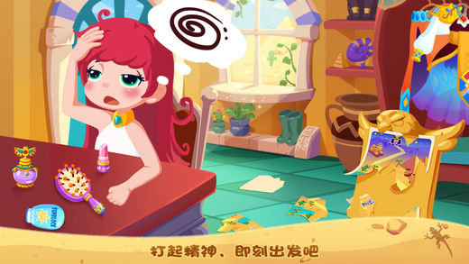 唔~头好痛,怎么回事? 外面怎么都是黄沙,这儿到底是哪里啊? 难道……难道这女孩失忆了吗? ^_^关注Libii官方微信公众号:libiigame 随时掌握时尚育儿资讯以及游戏动态^_^ 在一家埃及民房里,受伤的艾米莉悠悠醒来,她失忆了,完全忘记了昏迷之前,自己身上究竟发生过什么事情。昏昏沉沉的走出房间,哇,漫天的黄沙覆盖下,隐隐约约有一条不知通往何处的道路。快快把自己收拾干净,打扮一下,带上地图去探险吧!在这条道路上,各种未知的探险在等待着你:破碎的石像、无人照看的骆驼、被围攻的狮身人面像、神秘的星象图……不知在这道路尽头,能解开艾米莉的身世之谜吗? 游戏玩法: 打开游戏,来到沙漠之国埃及。咦?这里好像有一个破碎的石像,周围脏兮兮的,像是好久没有清理过了呢!先用吸尘器吸走散落在各处的残枝落叶,接着用剪刀将缠绕在石像底座上藤蔓剪断,然后用胶水将石像破碎的部分一块一块拼接起来,最后,转动转盘使石像复活。嗯~一切都进行的非常顺利,进入下一站吧!哇,这里好像是一个古老的面包制作工坊,你需要用原始的方法来制作面包哦。先将米舀入米缸,接着将米捣碎,掺入适量的水,随后用手和面。将面团和均匀后,选择一个想要的面包形状,然后就把面团放进壁炉中烘烤吧。用原始的炭火和炉子,烤出的面包也一定是风味十足哦!吃完面包,继续上路。前方好像有一大群甲虫在围攻狮身人面像!用手指点击虫子将它们一个个消灭吧,如果遇到大虫子,需要多点击几下哦。勇敢的你准备好迎接挑战了吗? 游戏特色: - 原汁原味沙漠之国,领略别样异域风情 - 主角肤色随意切换,带来丰富想象空间 - 多种服饰装扮选择,主角宠物人人有份 - 关卡游戏丰富多彩,游戏内容分量十足 - 通关解锁相应知识,寓教于乐精彩纷呈 关于我们: Libii Game一直致力于为孩子们打造寓教于乐并充满想象力的互动性游戏,而今已拥有超过四亿的下载量并且仍与日俱增。我们将不懈努力为他们创造出更多丰富有趣的内容。 更多产品资讯,请访问官方网站:www.libii.cn 欢迎关注我们的官方微信公众号:libiigame 如需帮助,或者有任何想法、建议,请随时联系我们,邮箱地址:WeCare@libii.com 用户须知: 这个游戏的下载和使用完全免费,其中一些基本物品也可以免费使用,但是请注意,有一部分附加物品是需要您购买并付费之后才能解锁使用的,因此,如果您不想使用这类附加物品,也为了防止意外购买的纠纷,请您在设置中关闭购买应用软件这一项,谢谢您的配合。