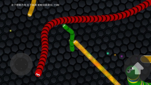 曾获得AppStore精品游戏推荐!(益智类) 贪吃蛇实时大作战玩法很简单,怎么击杀别人: 刚出来都是很小的一条小蛇,那么小蛇如何才能快速成长呢?那就是以小博大,击杀大蛇,然后吃掉他,这样比吃小点要快速很多。 那么如何用小蛇去击杀大蛇么?贪吃蛇对战版游戏玩法是不论蛇的大小,只要碰到其他蛇的身体就算死亡,身体分解成大圆点可以被其他蛇吃掉,这里小伙伴们只要控制好方向,找一条较大的蛇,一定要看准它的头部,然后趁机截住他,(屏幕右边有一个加速按钮,这里就看小伙伴们的预判意识了)让他去碰到你的身体,然后吃掉他! 小蛇慢慢成长为大蛇后,这里就又更好玩的方法了!没错,那就是围杀: 如何围杀其他蛇呢?当自己慢慢变成大蛇后,身体都很长,只有不停的在地图里绕,当你返回去的时候或许已经有几只被困在你身体围城的圈里死掉。 还有一种方法就是身体一直处于半弧形行走方式,想吃掉哪条蛇那就在他附近找机会绕圈,把他绕进圈里,不过为了防止被小蛇击杀,小伙伴可以在圈里横插过去,缩小她的活动范围,这样他就能更快的击杀他并吃掉他了。 只要足够大,那么想围杀谁就可以围杀谁,一切都是那么轻松,赶快下载试试吧。