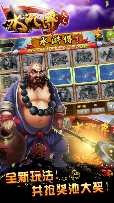■appstore最受欢迎的水浒传老虎机游戏隆重上线! ■全新玩法,亿万奖池,万人同时在线pk,超级大奖等你拿! 【游戏特色】 1.每日金币领到爆,全盘奖停不了! 2.万人在线共抢奖池大奖! 3.VIP坐拥多重特权,等级越高福利越多,高富帅就要VIP! 4.逼真的3D人物,古色古风的动画,最纯正的中国风! 5.不吃分合理概率,做最好的连线机! 6.无需注册,免费下载,立刻开玩。