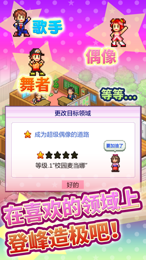 这是一部让玩家扮演音乐经纪公司董事长、培养明日之星的经营养成游戏! 多多外出走动、利用广告媒体等,来发掘各种拥有独特个性的新人吧! 首先,要决定新人的唱片公司。反复进行课程培训打好基础,就可以在新人甄选上脱颖而出并成功出道。 出道后可以参加各地的营业活动、制作属于自己的独一无二的唱片,通过举办演唱会与粉丝进行互动,让人气噌噌噌地上升吧。积攒一定人气的话,说不定还能受邀担任著名综艺节目的嘉宾呢?! 粉丝增多的话,营业活动的委托和专辑以及周边商品的销量都能快速上升哦 获得广大粉丝层,冲刺各大唱片公司的音乐大奖吧! 那么,为了拿下最高级的“日本百万大奖”,努力培养艺人吧!目标是百万级销量!…