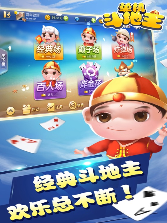说出来你可能不信,但是我真的没有骗你,我们真的是最经典的斗地主! 我们不需要流量就可以玩,随时随地都能玩! 我们的电脑特别厉害,感觉就是斗地主九段,我一局没赢过! 不用充钱,不用欢乐豆,不用Q币,不用RMB,随来随去! 多种道具,多样特效,打牌就跟看电影,超爽! 自由控制是否联机,想打人就打人,想打电脑就打电脑! 还在等什么? 还不快来!! 游戏特色: 1. 免费超快下载,占用空间超小,不耗电量,更不耗流量。 2. 玩法丰富多样,经典玩法、懒子玩法。还有更多其它小游戏刺激惊险,爽翻天! 3. 游戏画面精美,特效精湛,玩牌就像看电影。 4. 联网单机随意切换,想打电脑就打电脑,想打人就打人。 5. 真人美女陪你来玩,打牌撩妹两不误! 斗地主是流行于湖北武汉、汉阳一带的一种扑克牌游戏。游戏需由3个玩家进行,用一副54张牌(连鬼牌),其中一方为地主,其余两家为另一方,双方对战,先出完牌的一方获胜。当初有一群“跑得快”痴迷者,经常在人数不足的情况下玩三个人的“跑得快”,起初并不叫斗地主,他们圈内的人叫“二打一”。斗地主首先命名的牌型是飞机,然后是火箭,1995年,“二打一”正式命名为“斗地主”。如今已风靡整个中国,并流行于互联网。斗地主、德克萨斯扑克及百家乐是世界上三种最流行的扑克游戏。