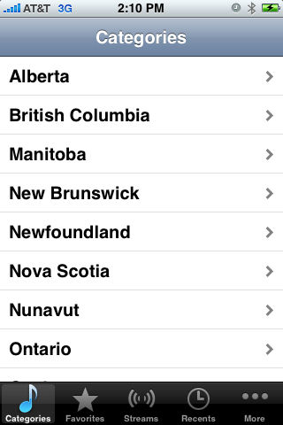 Listen to over 140 Canadian radio stations! Now with Twitter and Facebook support: tell your friends what radio station you're listening to, live, without stopping your audio to invoke an external Twitter or Facebook client! Dynamic directory provides for adding new directories and stations from our servers with no need for an application update. Select your station by country or add your own favorite stream. You can also pick from your favorites or your recently played stations. You can even share with your friends iTunes and Radio links to a station stream using your iPhone or iPod Touch Mail application. And you can also post your favorite stations directly to Twitter or Facebook.