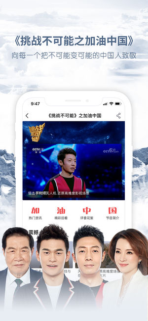 【中国人民解放军海军成立70周年】 央视影音军事全程展现大国海军风采 【2019世界乒乓球锦标赛】 4月21日至28日,2019年世界乒乓球锦标赛挥拍开赛。马龙丁宁领衔中国军团16人豪华阵容出战,日本队也派出张本智和、石川佳纯等全部主力,谁能捧杯布达佩斯见分晓 【C+VLOG精彩上线!】 在这里,你将看到明星红人们的生活日常和工作花絮,C+VLOG带你走进TA们,走进一个有趣的VLOG世界。景甜、许魏洲、欧阳娜娜、假笑男孩Gavin……你还想看到谁? 【《国家宝藏》第二季】 巍巍中华,璀璨文明。浩瀚青史,笔书丹青。国之重器,前情往事。一眼千年,不愚初心。《国家宝藏》第二季,邀您再赏中华文明之美…