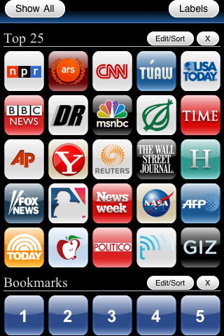Free up your screen with the app that gives you one-tap access to all of your favorite news. This quick and powerful built-in news browser blocks ads and optimizes websites to fit on your screen. Turn on Optimized Browsing and get news stories faster than you normally can. It will even work on other websites. Features --------- -Tilt your iPhone to scroll through websites -Share sites on Twitter/Facebook and others -Fully integrated with Instapaper -Hides Most Ads from Mobile Sites -Saved Text Can Be Read Offline -Full Screen Support -Lock Viewing Orientation -Customizable Start Up Screen -Ad-free Google Search -Save Images to Your Device -Scroll to Top Button -Email Links to Friends -Save a Homepage that Always Shows First -Add/Sort/Delete Unlimited Bookmarks -Home Button for Easy Access to Start Page -Add Your Own Favorite Sites Instructions ------------ Tap the bottom-right corner to display the navigation button. For more instructions, visit SmartestApple.com. 197+ Sites included -------------------- World & U.S. News: NPR AP Drudge Report CNN USA Today ABC News MSNBC CBS News Time Magazine Yahoo! News Google News BBC Reuters Huffington Post Fox News Newsweek AOL News U.S. News Newsday Agence France Presse Today Show NewsMax Politico Slate Magazine United Press International Tech: Gizmodo CNET MacRumors Macworld TUAW iLounge Techmeme Engadget Lifehacker Slashdot ComputerWorld Technology Review iPhoneFreak NASA News Google Tech GigaOM Mashable Ars Technica TechCrunch CrunchGear MobileCrunch TechCrunch IT Coolest Gadgets The Inquirer V3 Computing 9 to 5 Mac Silicon Alley Insider Stuff Magazine ReadWriteWeb Regional News: Arizona Republic Atlanta Journal Constitute Baltimore Sun Boston Globe Boston Herald Canadian Broadcasting Corporation (CBC) Chicago Tribune Cleveland Plain Dealer Dallas Morning News Denver Post Detroit Free Press Hartford Courant Houston Chronicle Indianapolis Star KTLA Los Angeles Times Los Angeles Daily News Miami Herald Minnesota Star Tribune The Morning Call New York Times New York Post Orlando Sentinel Philadelphia Inquirer Salt Lake Tribune San Diego Union-Tribune San Francisco Chronicle (SFGate) The Seattle Times Sun Sentinel Tampa Bay Online The Hill Times Union (Albany) Washington Post Washington Times West Palm Beach TV Entertainment News: Star Magazine TMZ OMG! News People Magazine E! Meet the Famous The Onion WWE Daily Perez Hilton Google Entertainment Financial News: Bloomberg CNBC Wall Street Journal The Economist CNN Money BusinessWeek Forbes Fox Business Financial Times Google Business Sports News: ESPN The Score CBS Sports Fox Sports Sports Illustrated NBA NHL NFL MLB Google Sports UK News: The Guardian The Sun The Times Telegraph Daily Mirror Birmingham Post Evening Standard Teletext The Metro Independent Daily Mail Yahoo! UK News Google UK News Reuters UK News Now Popular Sites: digg Slickdeals Weather.com FHM Ask Men Spike ELLE GameSpot IGN Maxim Break.com NBC MTV Discovery Channel Car and Driver MSN Yahoo! Fandango TV Guide Men's Health Facebook MySpace Twitter NAVTEQ's Traffic GasBuddy Wikipedia Reddit Ebay Paypal Amazon Dictionary.com Flickr AccuWeather MapQuest MovieFone More iPhone formatted websites to come! Have a favorite site that you want to have its ads stripped and formatted to fit your iPhone? Email us through our website. Note to Users: If you like this app, you will also like the 5-0 Radio app. There's a link to it at our website: smartestapple.com