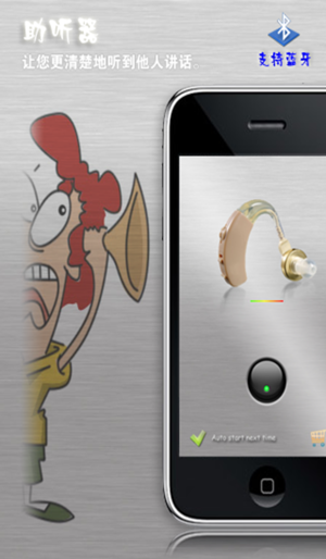 [支持蓝牙] 聆听,从未有过如此亲近!3合1助听器,全面支持中文和蓝牙耳机,现已更新上市! 这个应用程序使您的iPhone/iPod成为一个助听器、麦克风甚至是扩音器。 有了助听器,您将能够更清楚地听到别人说话。建议您使用耳机,以获得最佳效果。 现已全面支持蓝牙耳麦 - 使用这款软件,带上耳麦,您就像带上了一款真正的助听器,体验更加亲切自然。 使用麦克风,您可以简单地进行卡拉OK,只要插上在耳机插孔插上扬声器线,不需要使用真正的麦克风。 甚至,当您需要一个扩音器,例如,通知您办公室的其他人或在嘈杂的环境中使别人注意时,这将有助于使您的声音更加宏亮,从而使别人更清楚地听到。 当然…