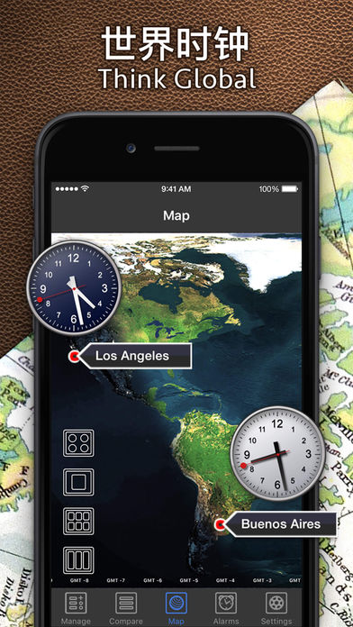 世界时钟意味着商机。它使您可以轻松规划您的职业和私人全球活动! 以苹果为特色:本周iPad应用程序。***最佳世界时钟!*** 必备程序,易于使用,功能全面 世界时钟使您可以选择显示无限数量的世界城市。您可以为选择的时区设定多个铃声。您能够查看广泛选择的世界城市,并且规划您的全球业务或私人关系,不会遇到任何问题。 • 比较视图 这种视图使比较和规划活动真正变得轻松。随时随地,放眼全球! • 世界地图视图 可滚动的世界地图,显示您的城市、时钟和时区。为地图上覆盖的图层提供实时的日光阴影,这将显示一年的季节变化。您能够在具有额外信息的不同世界地图设计之间进行选择。您也可以在世界地图上添加国家和时区。 • 闹钟 为今天、明天或将来的任何其它给定日期规划铃声。您可以为添加的时区设定铃声。我们已经置入了几种铃声。铃声次数会显示在比较视图上,这样您可以轻松形成对所有铃声的概览。当您关闭应用程序或运行其它应用程序时,铃声也将关闭。 • 分离视图 在iPad版本上,您会得到一个分离视图。这个屏幕为您提供您已添加的时区的概览及这些时区在世界地图上的位置。将世界时钟与地球的详细视图相结合。可以使用这种简明的概览追踪其它城市。 • 大钟墙 iPad版本还含有一个屏幕,使用大钟向您展示您的时区,以便您从距离iPad屏幕更远的位置形成对所有时间的完整概览。 可以根据您的需求定制。 我们理解您需要一个可以显示全球信息概览的世界时钟。世界时钟与iPhone和iPad兼容,具有您的职业和私人规划所需的全部特色功能!请观看并使用符合私人和业务意图的世界时钟吧。 • 额外特色功能 - 自动集成的日夜时钟外观 - 在AM/PM和24小时显示之间切换 - 您可以在八种多样化的靓丽主题背景中更改应用程序的设计。 专业而简单的软件 规划您的全球活动永远不会如此轻松!这是一款认真的软件,可以帮助您规划并管理您的会议、家庭及假期。简单、专业的应用程序,适合日常使用。