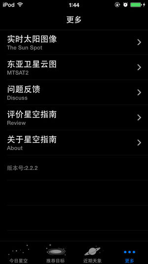 全新为iOS7界面优化。欢迎各位与朋友们分享观星的乐趣。 星空指南讨论区:http://meta.yeakong.com 1.今日星空——为天文爱好者提供适合观测的目标推荐 2.近期天象——未来一周的热门天象推荐 3.新增彗星数据自动更新——再也不用担心错过世纪彗星 4.分享——向您的好友分享天文观测的乐趣 5.天气——最全面专业的数值天气预报,为天文观测提供最佳保障 天文爱好者交流QQ群:170699825(注明星空指南用户) 新版本加入更多实用功能: ~实时北极星位置 ~木星大红斑中天时间 ~伽利略卫星实时位置 ~实时展示土星光环角度以及卫星位置 ~NASA实时太阳表面图像 ~高清东亚…