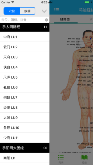 适合于中医学院的教师、学生、医务工作者、按摩师、注重养生保健的人士。 1、根据国家标准收录20条经脉(12条正经+8条脉)的穴位和经外奇穴(头面颈、躯干部和手、足部),包含经络的属性、主治范围和经络的当令时辰等信息。 2、支持显示12条正经和8条脉的循行路线图。 3、详细说明了408个穴位的注音、定位方法和定位图、主治范围、解剖原理、配伍、针灸方法、附注。 4、说明了每个经络的五输穴井荥输经合、母穴、子穴、原穴、俞穴、募穴、郄穴。 5、可以根据穴位关键词搜索、也可以根据疾病搜索相关的穴位。 6、可以显示当前的当令经络。 7、具有经络的相关口诀,并有语音朗读(女声),方便记忆。 8、动态显示巡行…