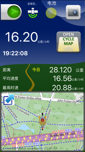 iPhone版自行車電腦。 现在可为您的iPhone5! 這可能是iPhone上最好看的一款自行車電腦。 簡潔清除。 沒有不必要的鈴聲。 顯示: - 速度, (km/h, mi) - 上次行程以及全部行程 - 距離, - 平均速度, - 最大速度, - 駕駛時間, - 行駛時間 - 基於OpenCycleMap、 Open Street Maps或内部圖的地圖 - 錄製旅途 - 駕駛路徑綜覽 请将您的跟踪数据作为KML或GPX文件到您的朋友。 只有当你想,当然! 你不需要更多了! 无需注册! 续利用GPS在后台运行,可以大大降低电池的使用寿命。