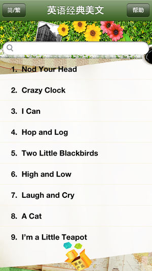 《英语美文听读》小学篇为小学生学习英语提供“听模仿、读背诵”的素材,为教师教学提供创设情景的思路和语言拓展方向。 《英语美文听读》小学篇精选80篇题材新颖、经典优美、符合小学生学习兴趣和认知水平的诵读材料,且美文配有重点词汇和中文翻译。话题广泛,体裁多样,适合师生课内外朗读背诵和表演;富有童趣,激发小学生的学习热情和求知欲;题材新颖,难易适中,符合小学生学习英语的认知水平;发音纯正,由英美籍语言专家示范表演朗读。 《英语美文听读》小学篇提供了以下经典美文。 01 Nod Your Head(点点头) 02 Crazy…