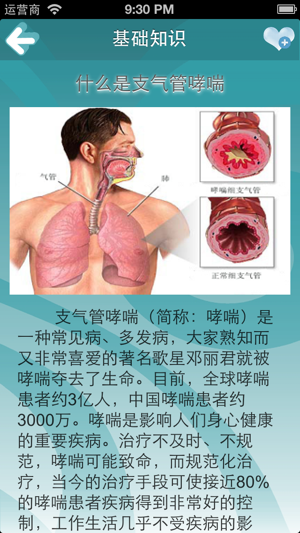 无广告,无插件,离线浏览,速度快 。 哮喘,是医学界公认的四大顽症之一,严重危害了人们的身心健康。目前,哮喘虽然尚不能根治,但绝大多数患者完全可以像正常人一样生活。那么如何才能做到呢?这是一款专用哮喘治疗和调养手册,提供全方位的正确认识哮喘、药疗、调养、护理保健、食疗、病例等内容,帮助您实现这个目标。该软件突出了知识性、实用性和科学性,并能减轻哮喘带来的痛苦! 内容目录介绍 认识哮喘 △基础知识 △症状体征 △预防 哮喘治疗 △检查鉴别 △中医治疗 △药物治疗 △病例解析 护理保健 △饮食控制 △中医治疗 △药物治疗 △起居养生 △运动控制 △心理控制 △其他控制…